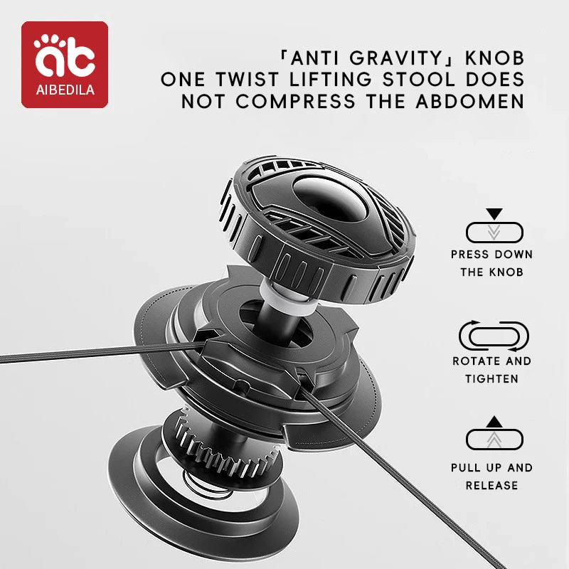 Anti-Gravity Button: A unique twist-lift mechanism that raises the seat, significantly reducing pressure on your abdomen and lower back.
