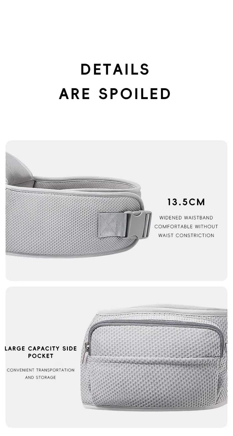 Adjustable Wide Waistband: A 13.5cm wide belt provides stability and comfort, evenly dispersing the toddler's weight across your hips.