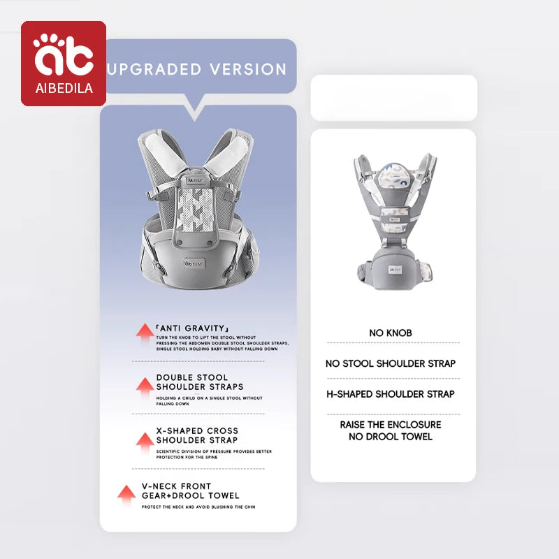 The AIBEDILA Multifunctional Waist Stool is an ergonomically designed carrier that combines the comfort of a hip seat with the security of a full carrier. Engineered for parents' comfort and babies' healthy development, it supports your child from infancy through the toddler years.