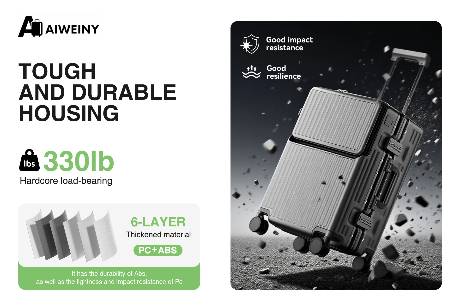 AIWEINY  Aluminum Frame Suitcase PC Hard Shell Pressure-Resistant Travel Luggage, 360° Silent Swivel Wheels, with TSA Lock.