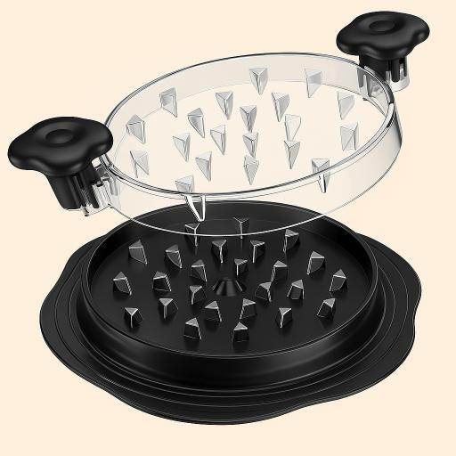 【Efficient and Comfortable Mincing】: The handle of the meat shredder is ergonomic and uses ultrasonic synthesis. The handle can rotate 360 degrees but is not easy to fall; the top cover and base are both made of five-pointed star spikes, which can shred the chicken more quickly.(Note: The installation handle needs to be pressed down hard! )
