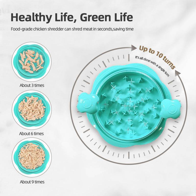 【Strong Anti-Slip Chassis】: In order to better mince the chicken and prevent friction on the desktop, the chicken shredder uses high-grade strong glue to fix the non-slip strip, which is not easy to fall off even after multiple cleanings, ensuring better rotation.