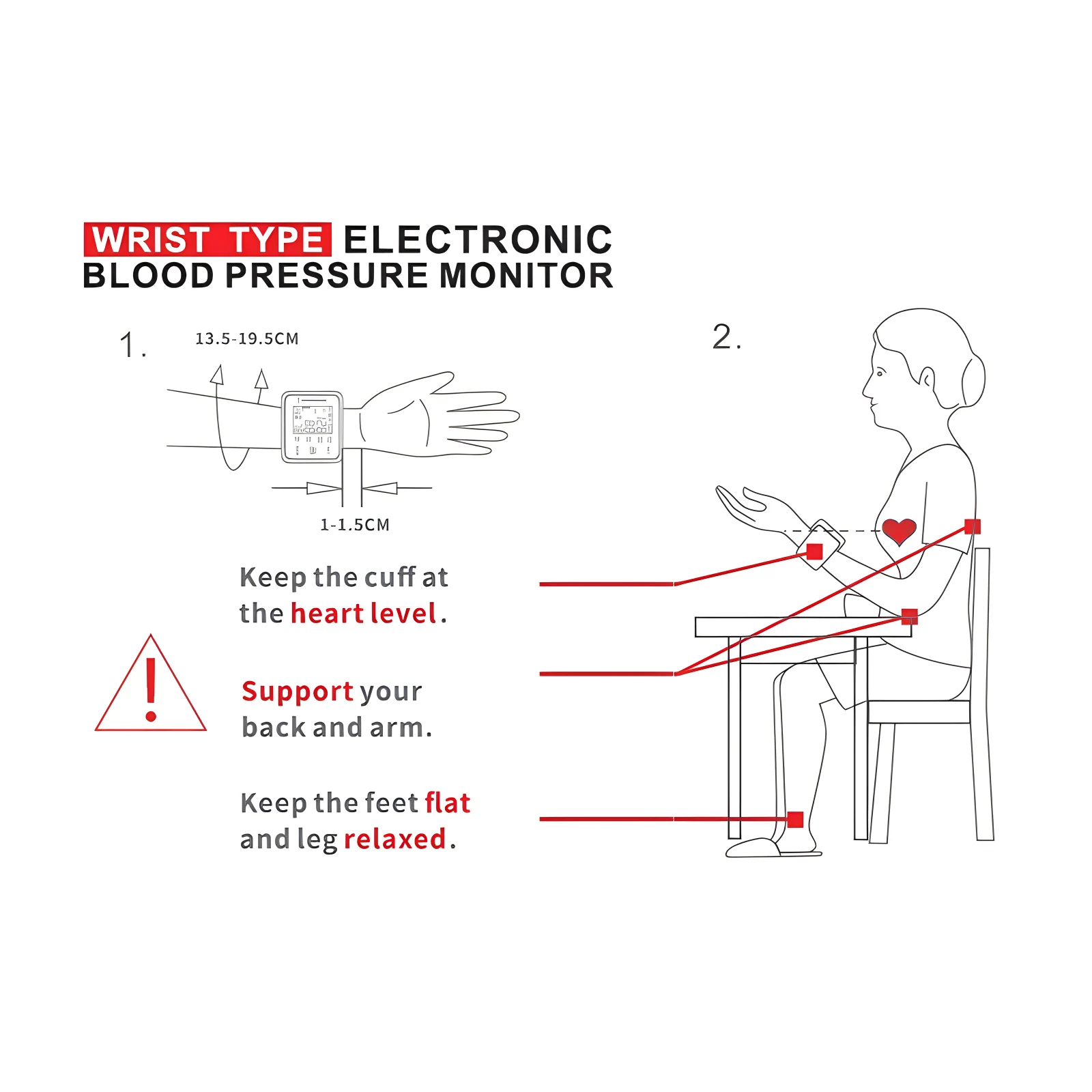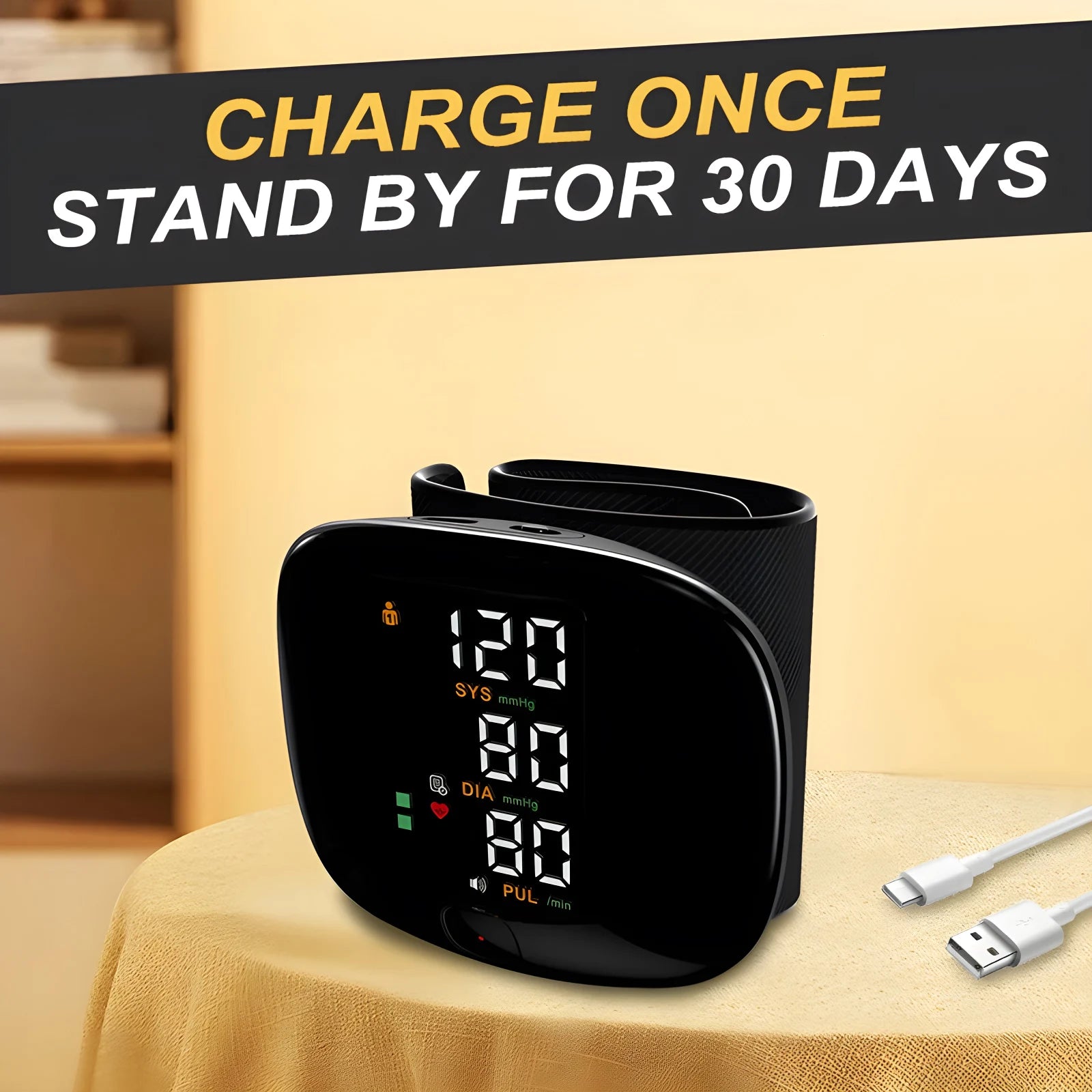 English Voice Activated Portable LED Wrist Blood Pressure Monitor