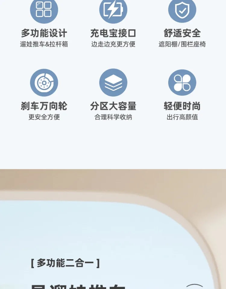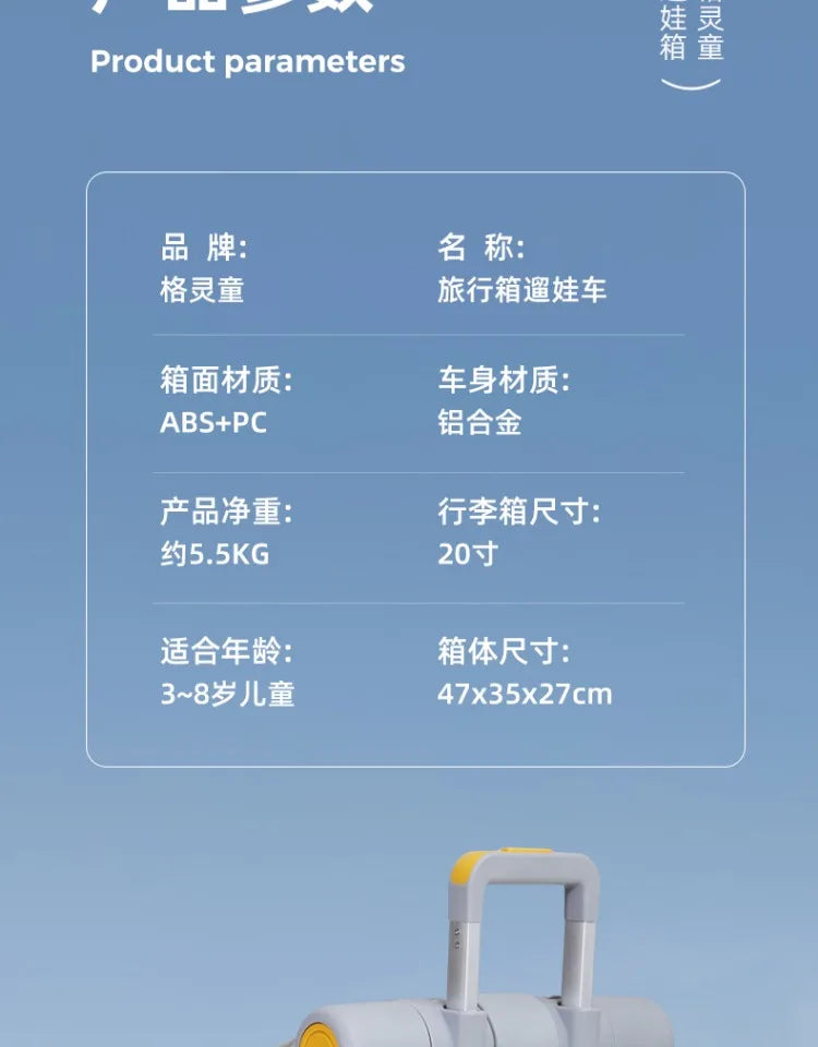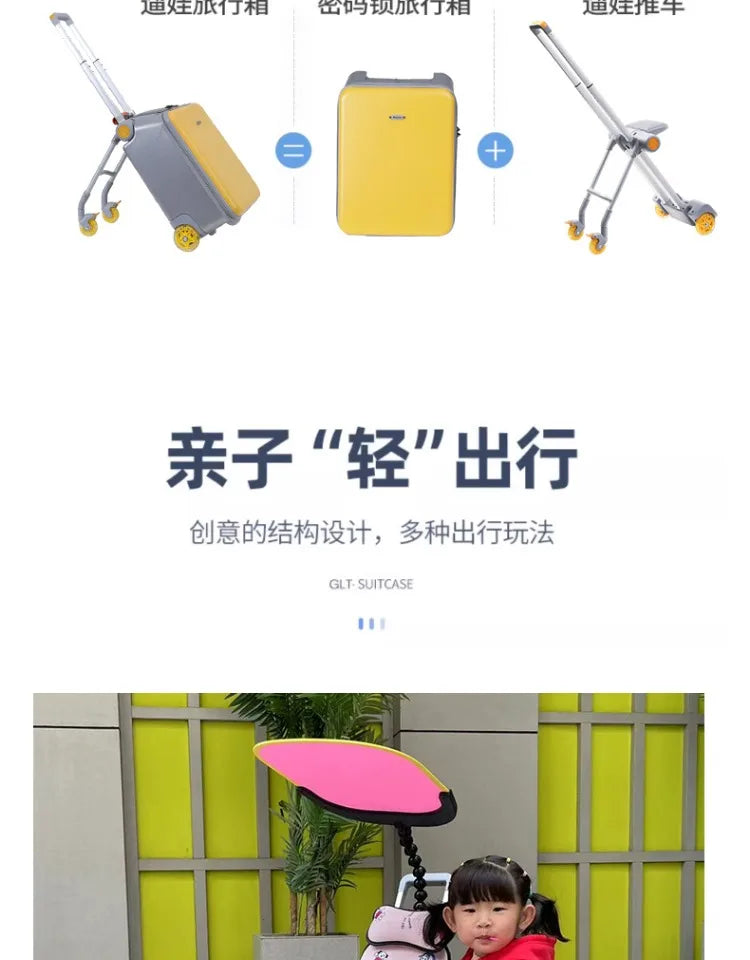 Hard Shell Kids Suitcase Travel Luggage Release Hands Carry on With Kid's Stroller ABS Material for Travel Kid Luggage