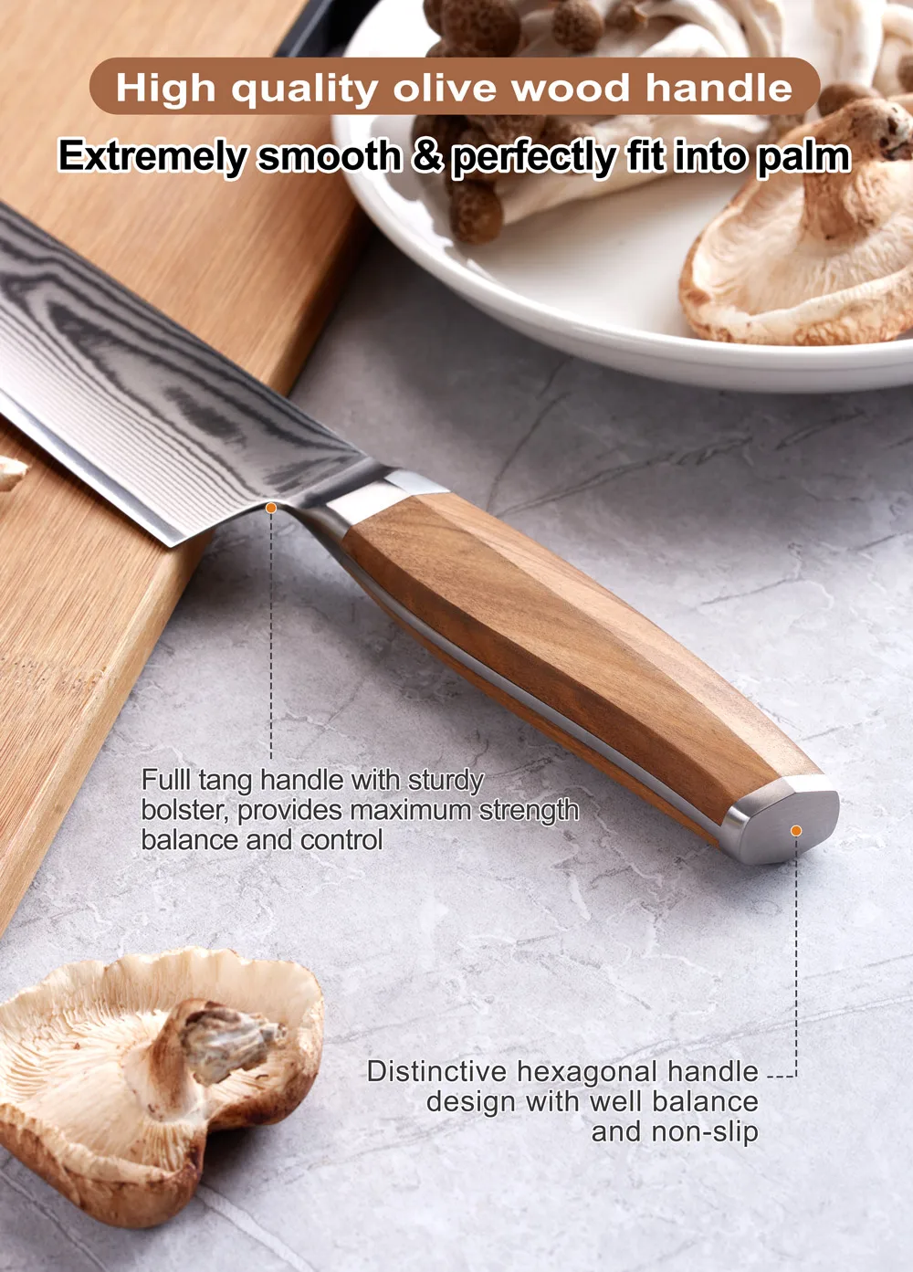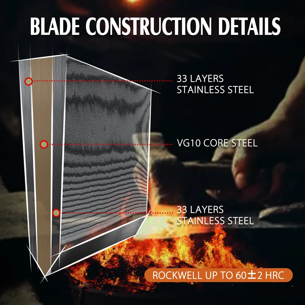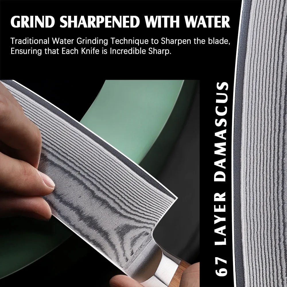 Superior Blade Performance: Crafted from 67-layer VG10 Damascus steel with a hardness of 60-62 HRC for razor-sharp edges that resist staining and retain their sharpness.