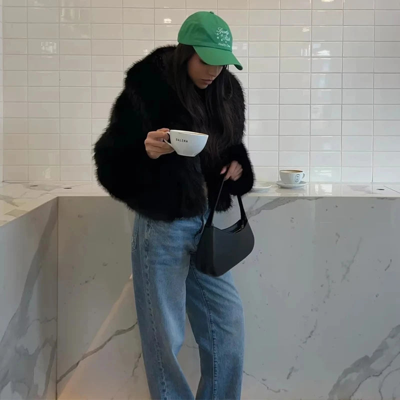 MUJER Black Faux Fur Coat for Women Autumn Winter Plush Coats and Jackets Streetwear Outerwear Long Sleeve Warm Women Coats