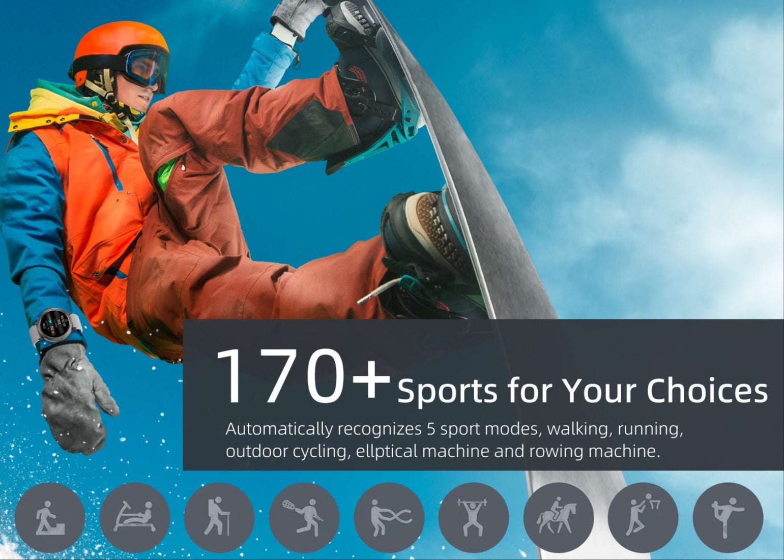 170+ Sports Modes: From swimming to cycling, the SmartX supports over 170 sports modes, including 14 built-in modes such as swimming, running, and hiking. Track your performance and progress across various activities.