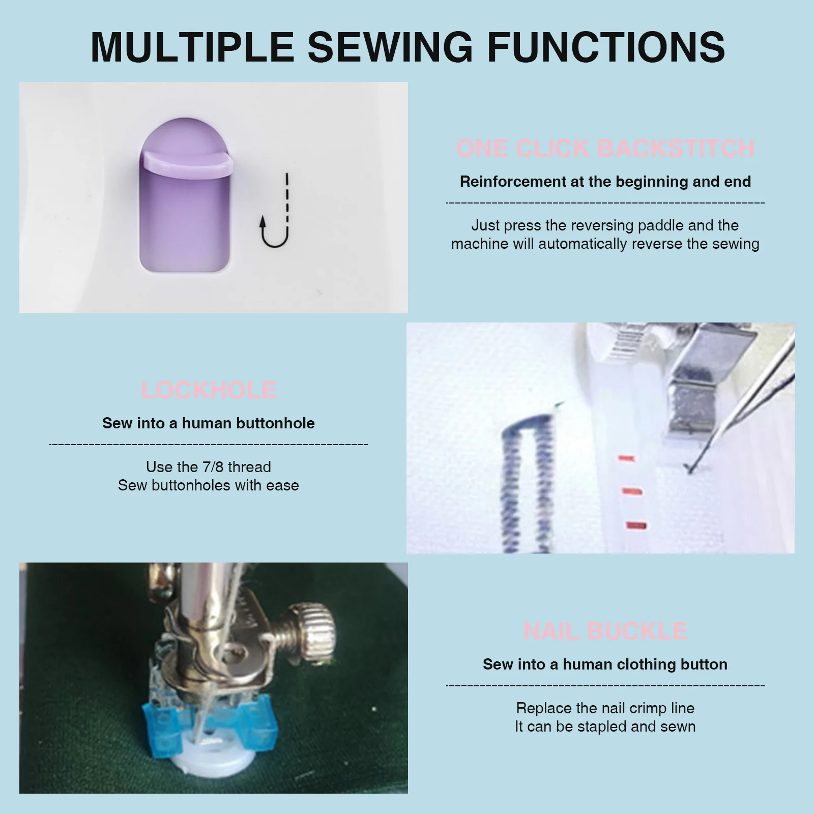 Beginner-Friendly Operation: Featuring a 2-speed motor and both button & foot pedal control, it gives novices full command. The reverse stitch function secures seams, and the built-in LED light illuminates your work area.