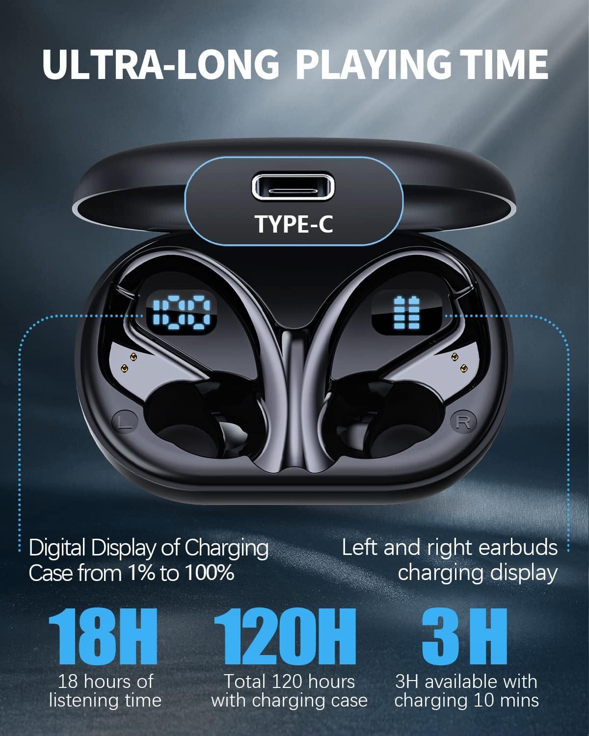 Active Pro Earbuds: Earhook Design for Running & Gym | LED Case Included