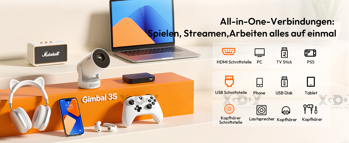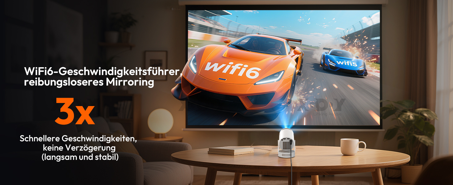 Schnelle Dual-Band WiFi6-Technologie: Der Gimbal G3S-Projektor verfügt über die neueste Dual-Band WiFi6-Technologie und unterstützt sowohl 2,4G- als auch 5GHz-Bänder für schnelleres und stabileres Streaming im Vergleich zu Single-Band WiFi5 |