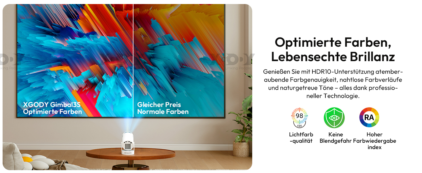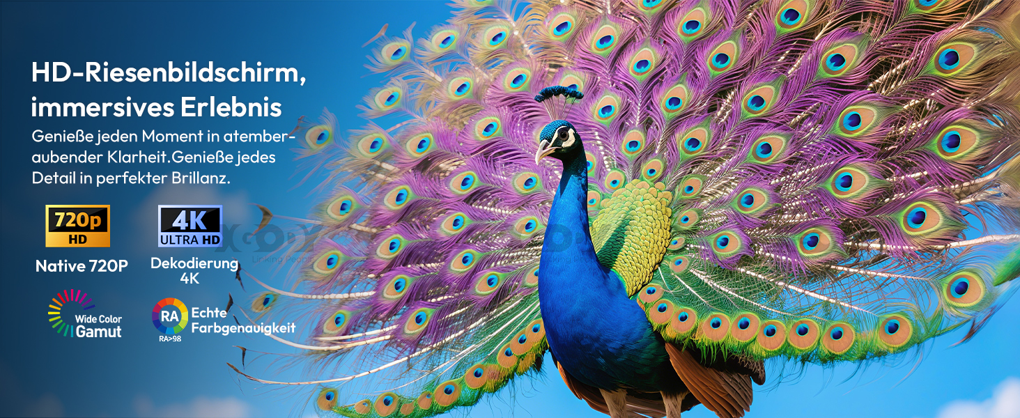 HD-PROJEKTION MIT 4K-KOMPATIBILITÄT – Erleben Sie atemberaubende visuelle Effekte mit diesem Mini-Projektor mit 1080P-Auflösung, 4K-Unterstützung, 12000-Lumen Helligkeit und einer Projektionsfläche von 40–150 Zoll. Verwandeln Sie jeden Raum in ein persönliches Heimkino. |